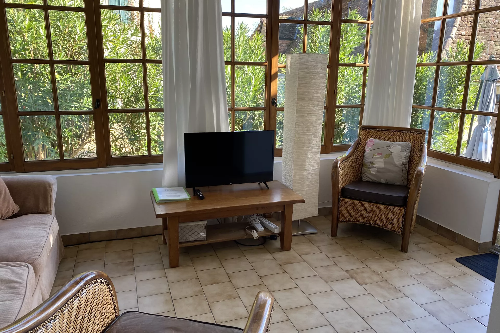 The bright sitting room has a comfortable sofa and armchairs, a television, a selection of books and free WIFI .
