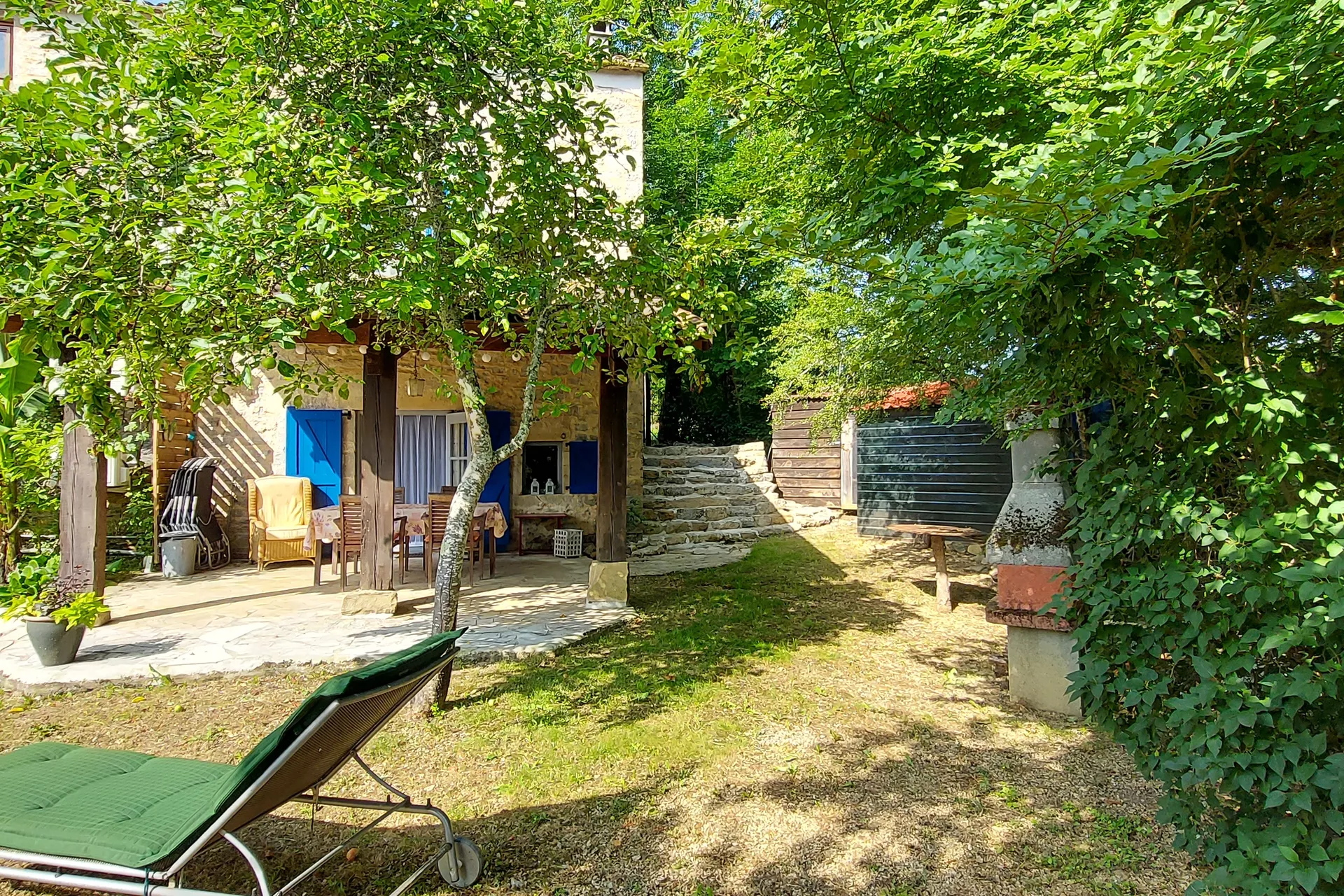 De gîte heeft een privé-ingang via een stenen trap en diverse opstapjes.